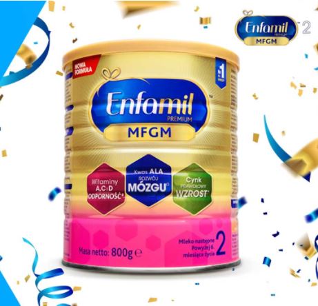 * Ważne: #Enfamil Premium MFGM 2 – mleko następne. Karmienie piersią jest najlepszym sposobem żywienianiemowląt. Karmienie sztuczne powinno następować w przypadku, gdy karmienie piersią jest niemożliwe lub utrudnione. Stosowanie produktu jedynie po zasięgnięciu opinii niezależnych osób posiadających kwalifikacje w dziedzinie medycyny, żywienia lub farmacji bądźteż innych specjalistów zajmującychsięopieką nad matkami i dziećmi. RB-M-17266