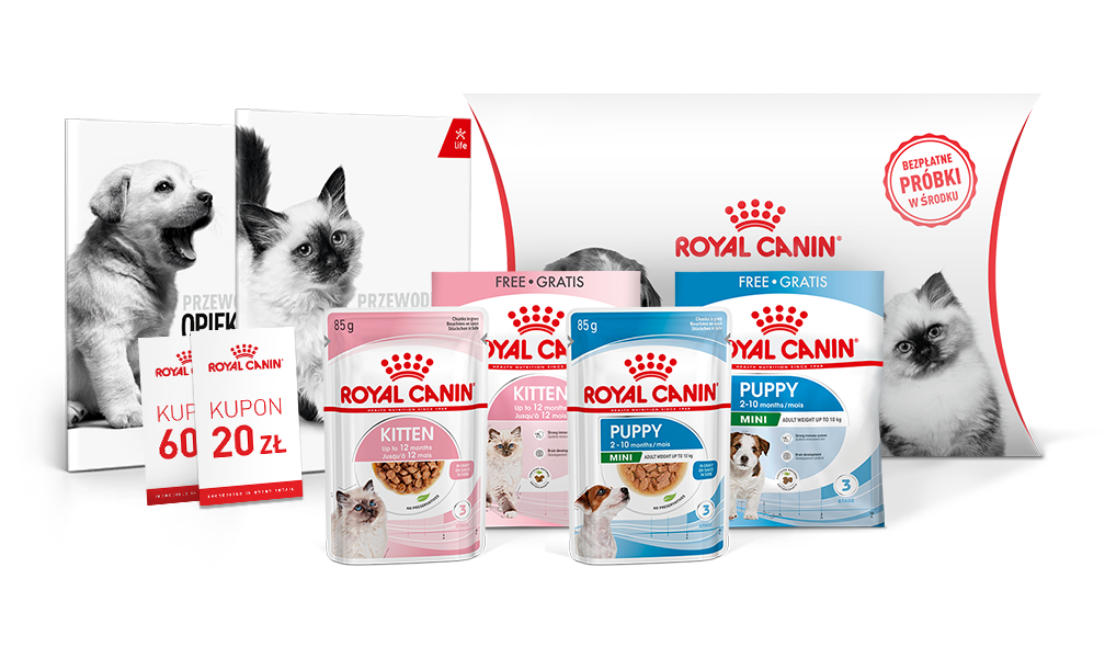 Odbierz próbki karmy, przewodnik nowego opiekuna oraz kupon rabatowy o wartości 20 zł lub 60 zł* do wykorzystania przy zakupie karmy suchej Royal Canin®, dla szczeniąt lub kociąt o gramaturze od 1,5 kg.