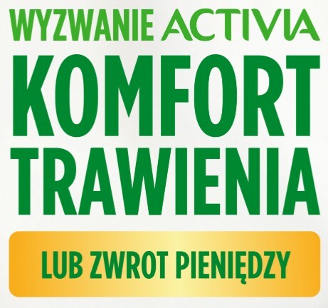 W ramach Wyzwania Activia możesz zakupić produkty Activia, jeść je regularnie przez minimum 14 dni, a jeśli **nie odczujesz poprawy komfortu trawienia – zgłosić swój udział i otrzymać zwrot kosztów zakupionych produktów (po spełnieniu warunków i zgłoszeniu w formularzu).