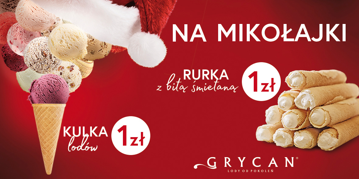 W Mikołajki, 6.12.2018, zapraszamy do naszych lodziarnio-kawiarni na kulkę lodów* lub rurkę z bitą śmietaną w wyjątkowej cenie 1zł!