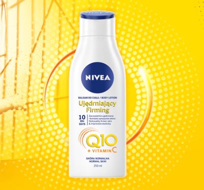 Wypróbuj NIVEA UJĘDRNIAJĄCY BALSAM DO CIAŁA Q10 + WITAMINA C! Udoskonalona formuła zauważalnie ujędrnia skórę i poprawia jej sprężystość już po 10 dniach stosowania!
