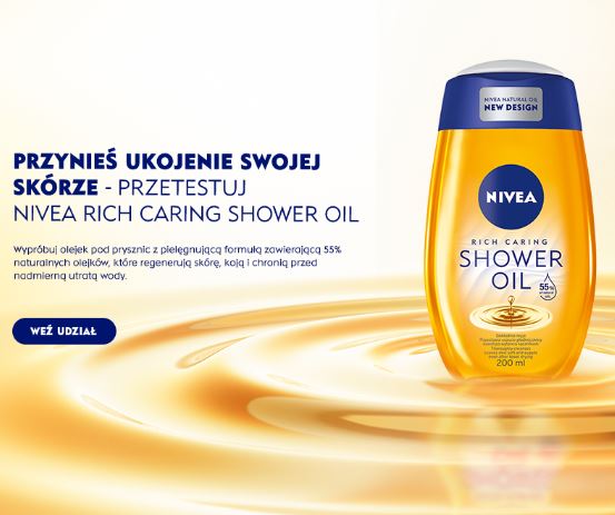 Nagroda: 1 produkt NIVEA RICH CARING SHOWER OIL o wartości 17,49 zł brutto każdy produkt – łączna pula Nagród: 200 sztuk.