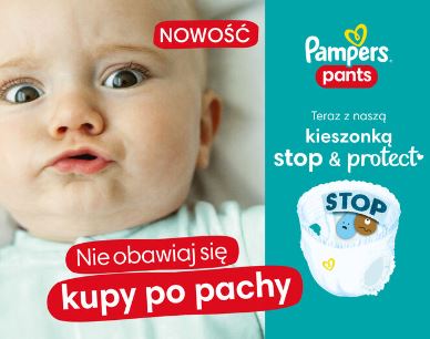 Każdy z rodziców chociaż raz w życiu znalazł się w „ekstremalnej sytuacji“ zgotowanej przez swoją pociechę. Niestety, niektóre pieluszki nie nadają się do zadań specjalnych, gdyż nie trzymają zawartości tak dobrze, jak byśmy tego chcieli, a co ważniejsze - potrzebowali. Jeśli chcesz, aby tego typu nieszczęśliwe wypadki przeszły do historii, koniecznie wypróbuj nowe pieluszki Pampers Pants z rewolucyjną kieszonką stop & protect – dzięki niej nie musisz już obawiać się kupy po pachy!