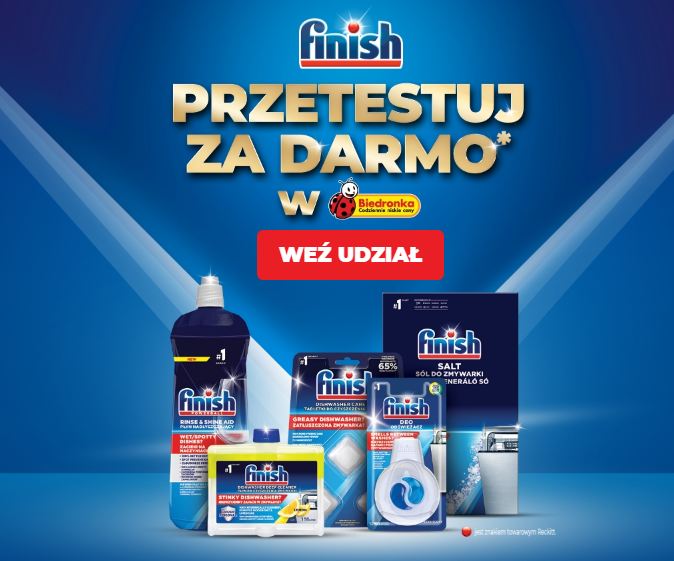 „Wypróbuj Finish – przetestuj za darmo w Biedronce”.