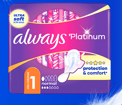 Chcesz przetestować naszą najlepszą ochronę* Always? Każda z 1000 Ambasadorek otrzyma od nas po 20 próbek podpasek Always Platinum! Każda próbka zawiera 2 podpaski – 1 na dzień i 1 na noc, by móc przetestować je w różnych sytuacjach i różnych porach dnia.